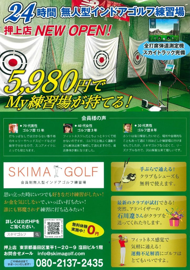 墨田区でインドアゴルフ練習場様よりポスティングのご依頼を頂きました!オープンのご案内